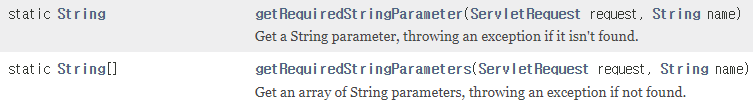 - ServletRequestUtils.getRequiredStringParameter() 메소드를 통해 요청 내용에 특정 파라미터가 존재하지 않으면 예외를 발생시킬 수도 있다.