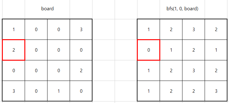 vector<vector<int>> bfs(int x, int y, vector<vector<int>> board) {