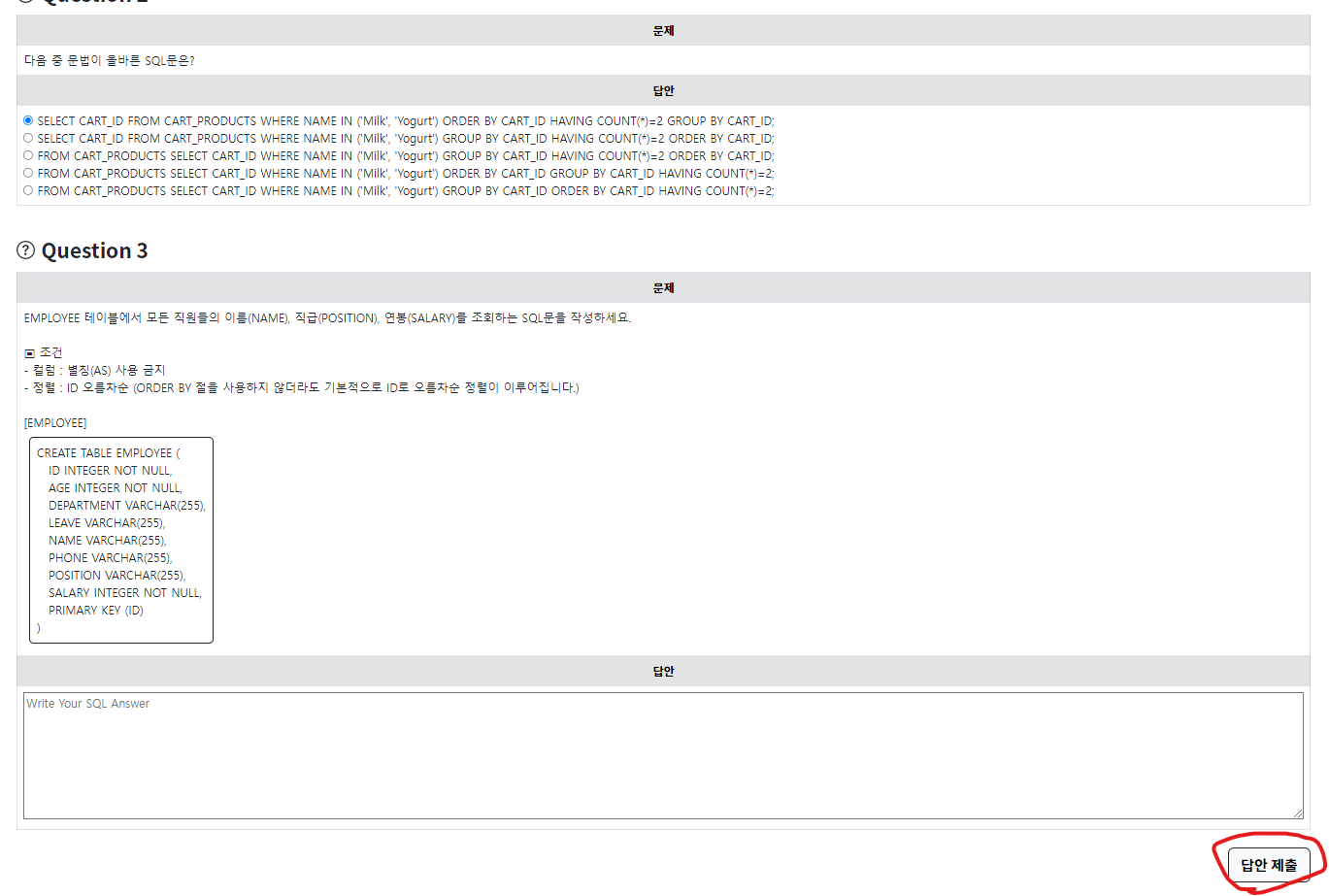 ii) 3문제를 다 풀고 답안 제출을 누른다.