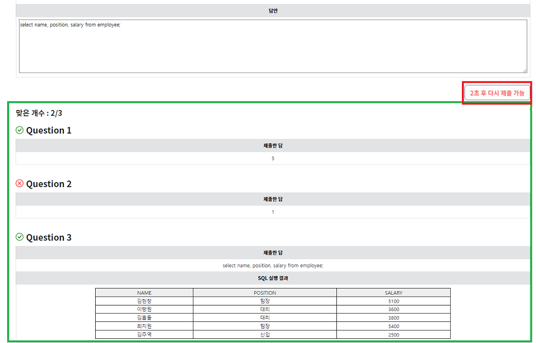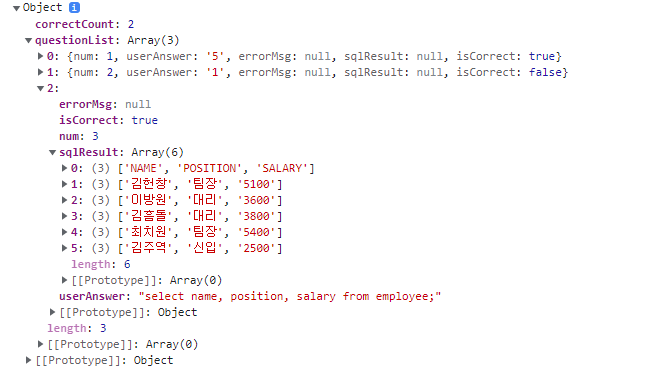 question3.setSqlResult(getSqlResultForShow(question3, sqlResult)); // 사용자에게 보여줄 sql 결과를 List<List<String>> 타입으로 생성 후 저장