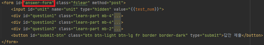 - Ajax 처리 과정은 [2-2. 채점 로직]에서 설명할 것임