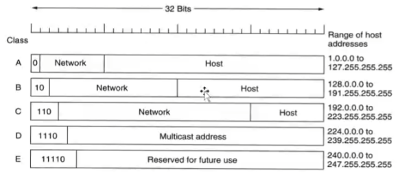 - 클래스 기반 할당 방식(CIDR) : 클래스를 A, B, C, D, E로 나누어 IP를 할당하는 방식이다. IP 주소를 크게 네트워크 주소와 호스트 주소로 나누게 되는데 클래스별로 범위가 다르다. 이 방식의 단점은 낭비되는 주소가 많다는 것이다.