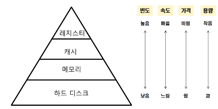 이미지 출처 : https://velog.io/@yu-jin-song/CS-%EB%A9%94%EB%AA%A8%EB%A6%AC-%EA%B3%84%EC%B8%B5-%EA%B5%AC%EC%A1%B0