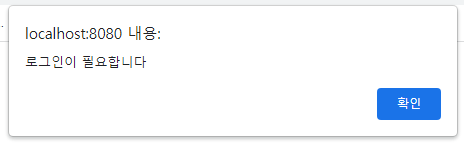 - 상단 "테스트" 메뉴 클릭시 사용자가 로그인 중이지 않다면 경고창 -> 로그인 페이지로 이동