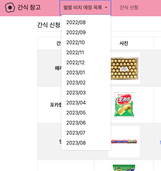 - 주문된 간식은 월별로 볼 수 있도록 별도의 목록을 만들어주세요.