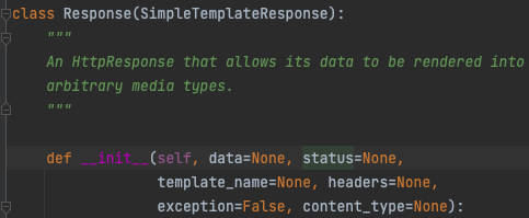 그리고 Response는 뷰 함수의 반환 타입으로, 다음과 같이 __init__()에 있는 인자들을 받을 수 있다.