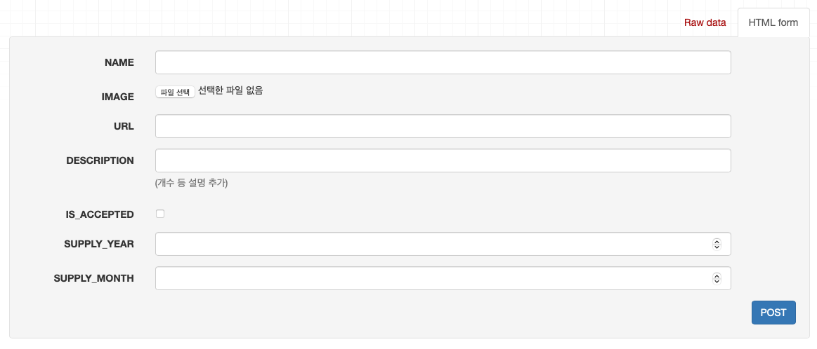 사실 지금까지 작성한 DRF 뷰 코드는 이해를 돕기 위한 코드로, 프로젝트의 규모가 커져가면서 반복성이 짙어질 위험이 있다. 그리고, 이 페이지에서 POST 요청을 전송하려면 손수 JSON 문자열을 입력해야된다는 어려움이 있다.