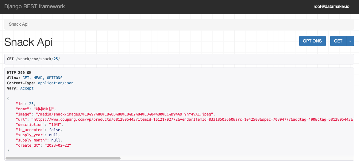 - 시리얼라이저의 내부 Meta 클래스의 fields에 선언한 필드들에 대한 데이터가 모두 보여질 것이다.