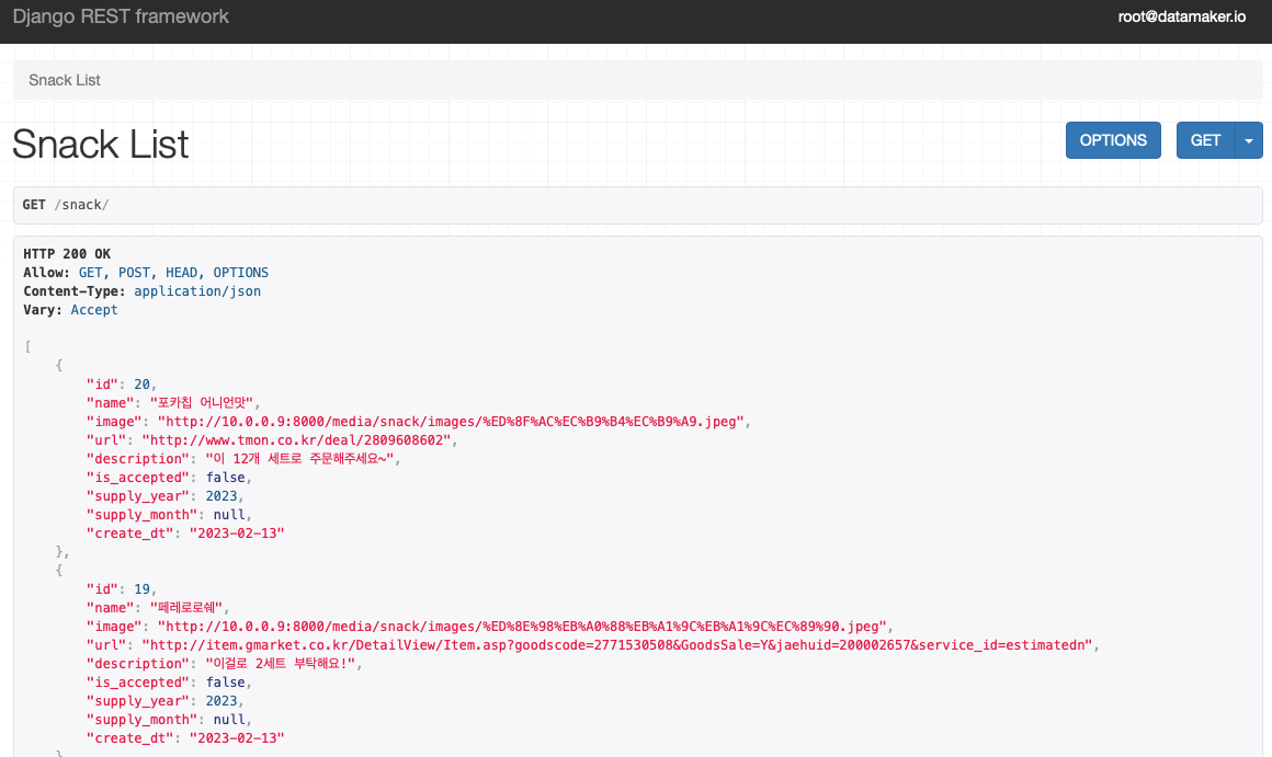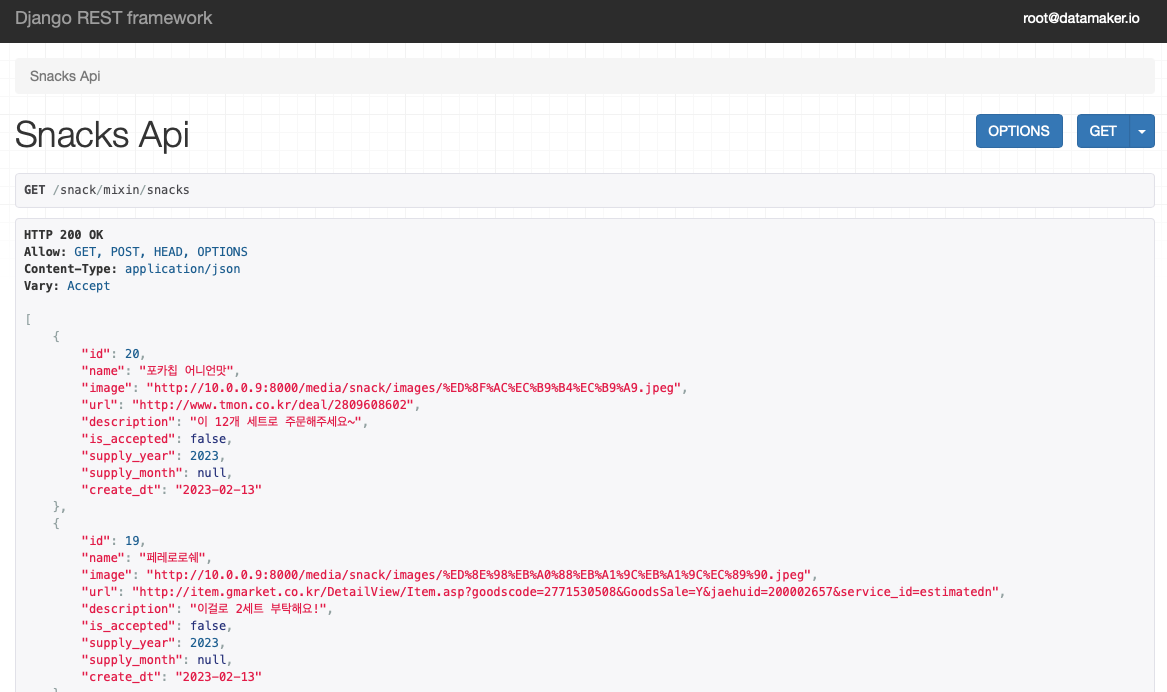 - url name : snack-list (형식 : {모델 소문자 이름}-list)