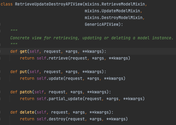 class SnackAPI(mixins.RetrieveModelMixin, mixins.UpdateModelMixin, mixins.DestroyModelMixin, generics.GenericAPIView):