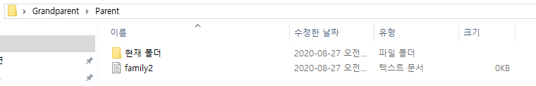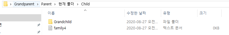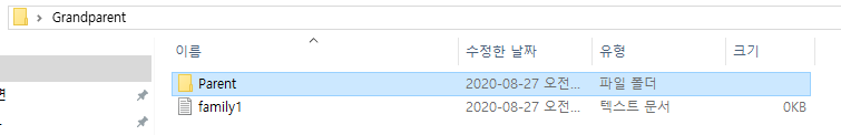 즉 Grandparent 폴더 안에는 Parent 폴더, family1.txt 두 요소가 있다.