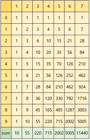 dyn[i][j] = (dyn[i][j - 1] + dyn[i - 1][j]) % 10007;