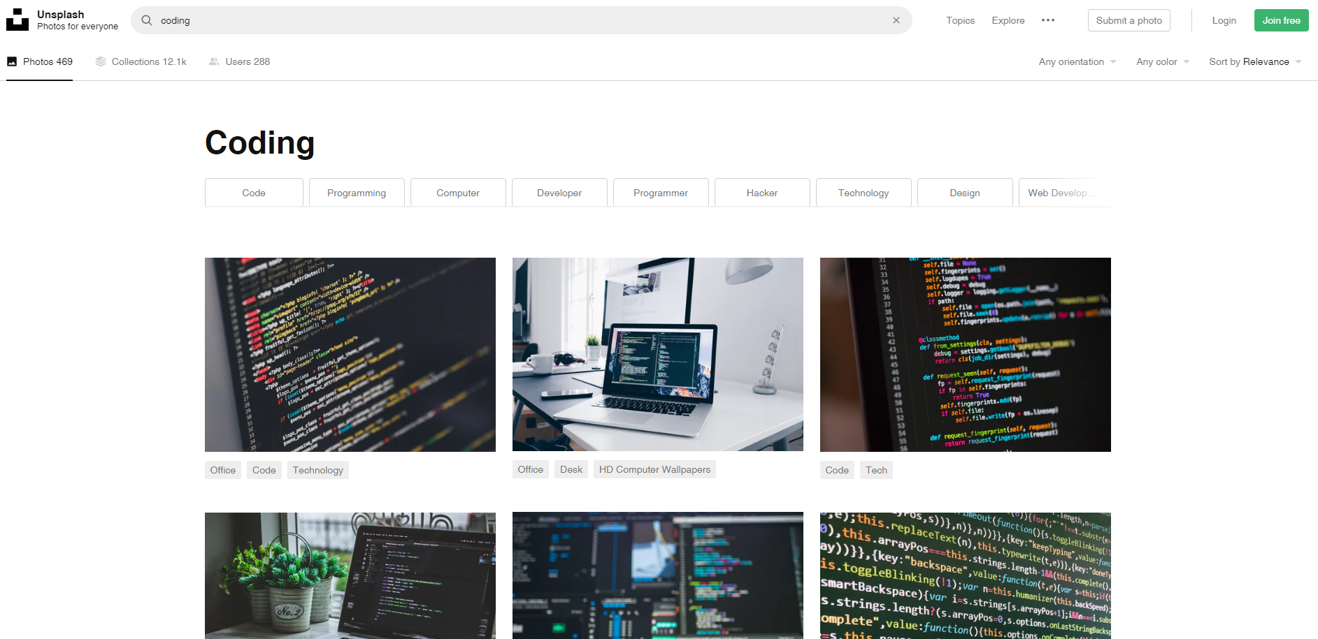 아래 사진은 Coding 을 검색하여 Coding 카테고리에 해당하는 사진이 보기좋게 나온것을 볼 수 있다.