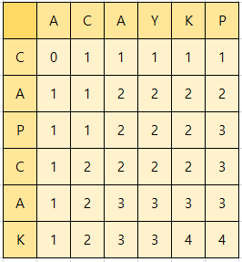 ACAY와 CAP의 최장 공통 부분 수열길이와 같을 수도 있고,