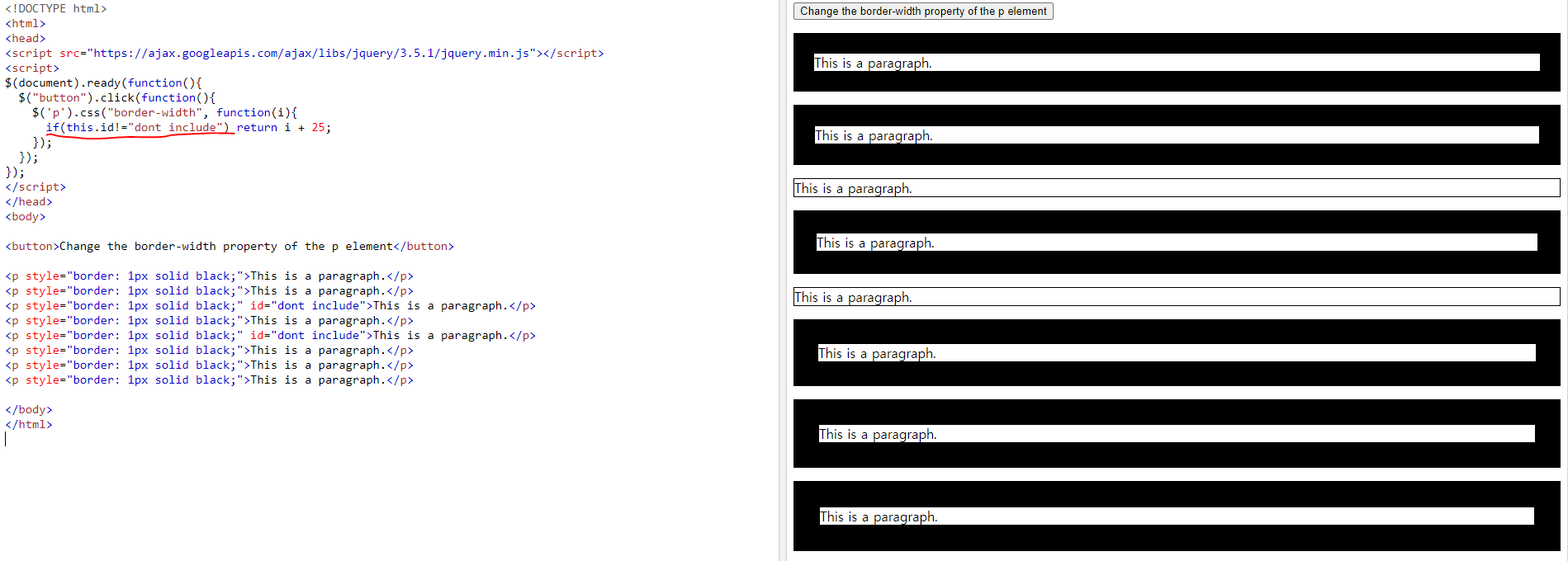 <p style="border: 1px solid black;" id="dont include">This is a paragraph.</p>
