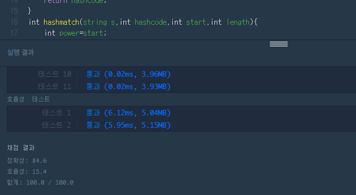 문자열의 길이를 맞추기 위해 뒷 부분에 계산된 해시값을 빼주는 함수는 아래 소스코드에서 hashmatch 함수이다.