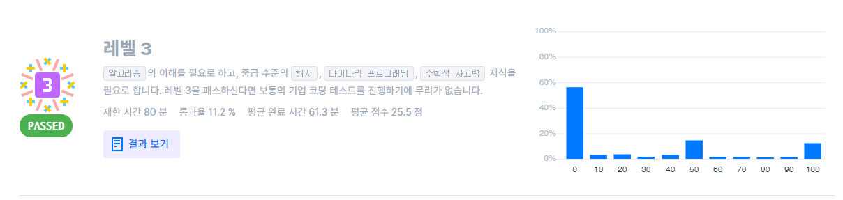 보통의 기업 코딩 테스트를 진행하기에 무리가 없다고 하니, 높은 수준의 문제를 내는 기업 코딩 테스트를 진행하기에도 무리가 없을 실력으로 올려야겠다.